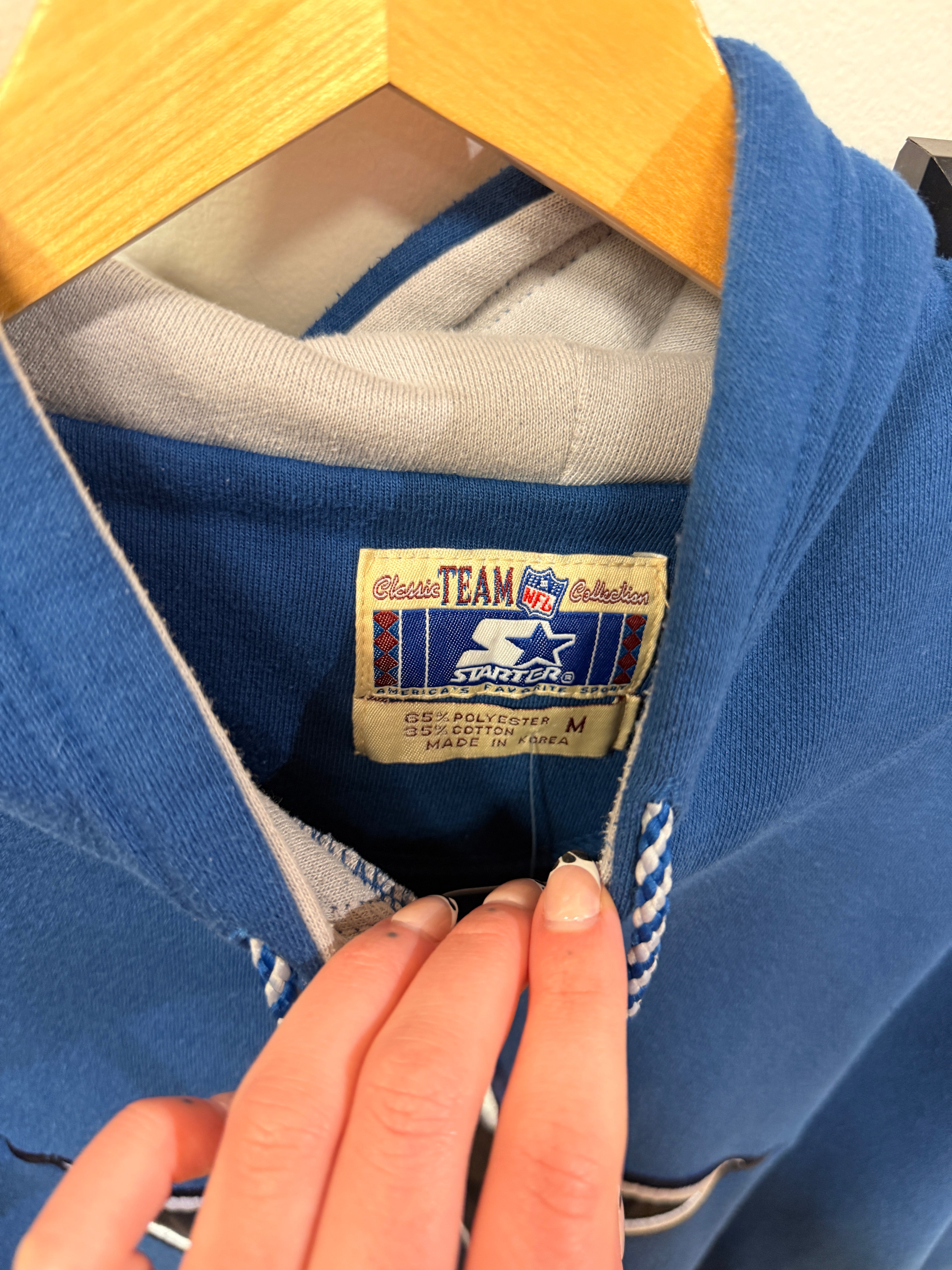 This vintage Dallas Cowboys hooded sweatshirt is a nostalgic addition to any fan's wardrobe. Made with a comfortable ...