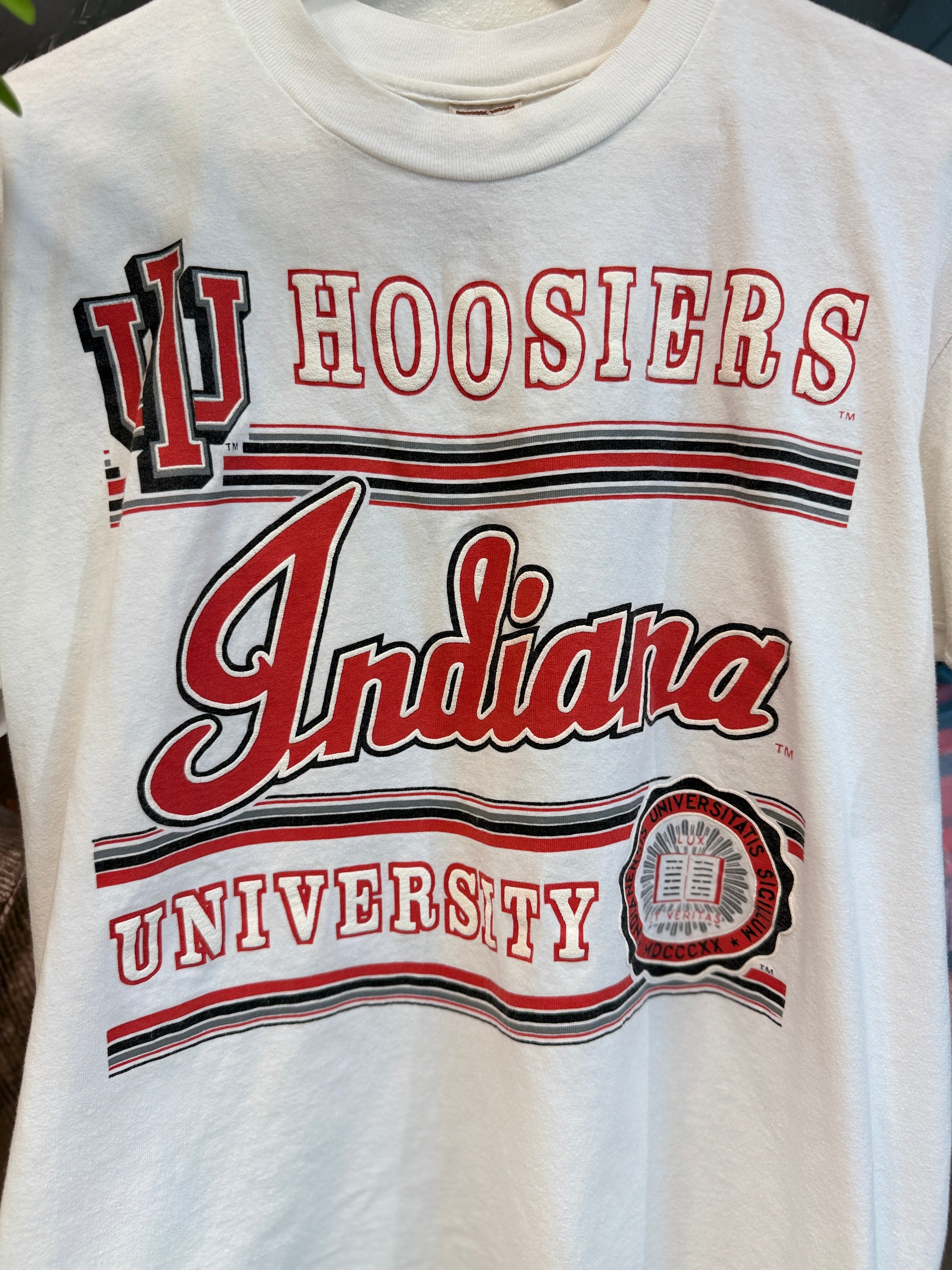 Get ready for game day with this vintage Indiana Hoosiers T-Shirt. Made with high-quality fabric and featuring the ic...