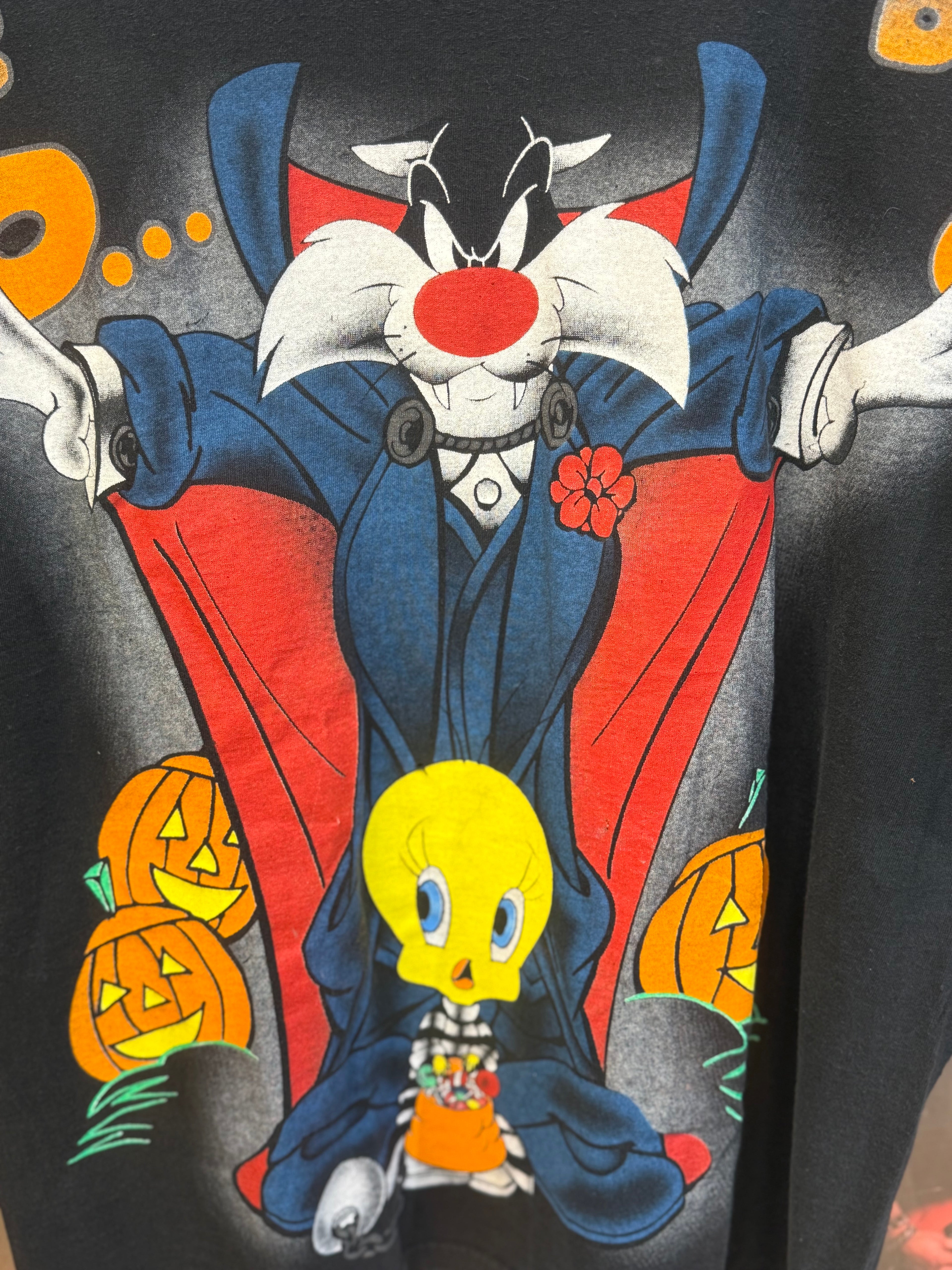 Experience nostalgia with this vintage Looney Tunes Halloween t-shirt. The iconic cartoon characters will take you ba...