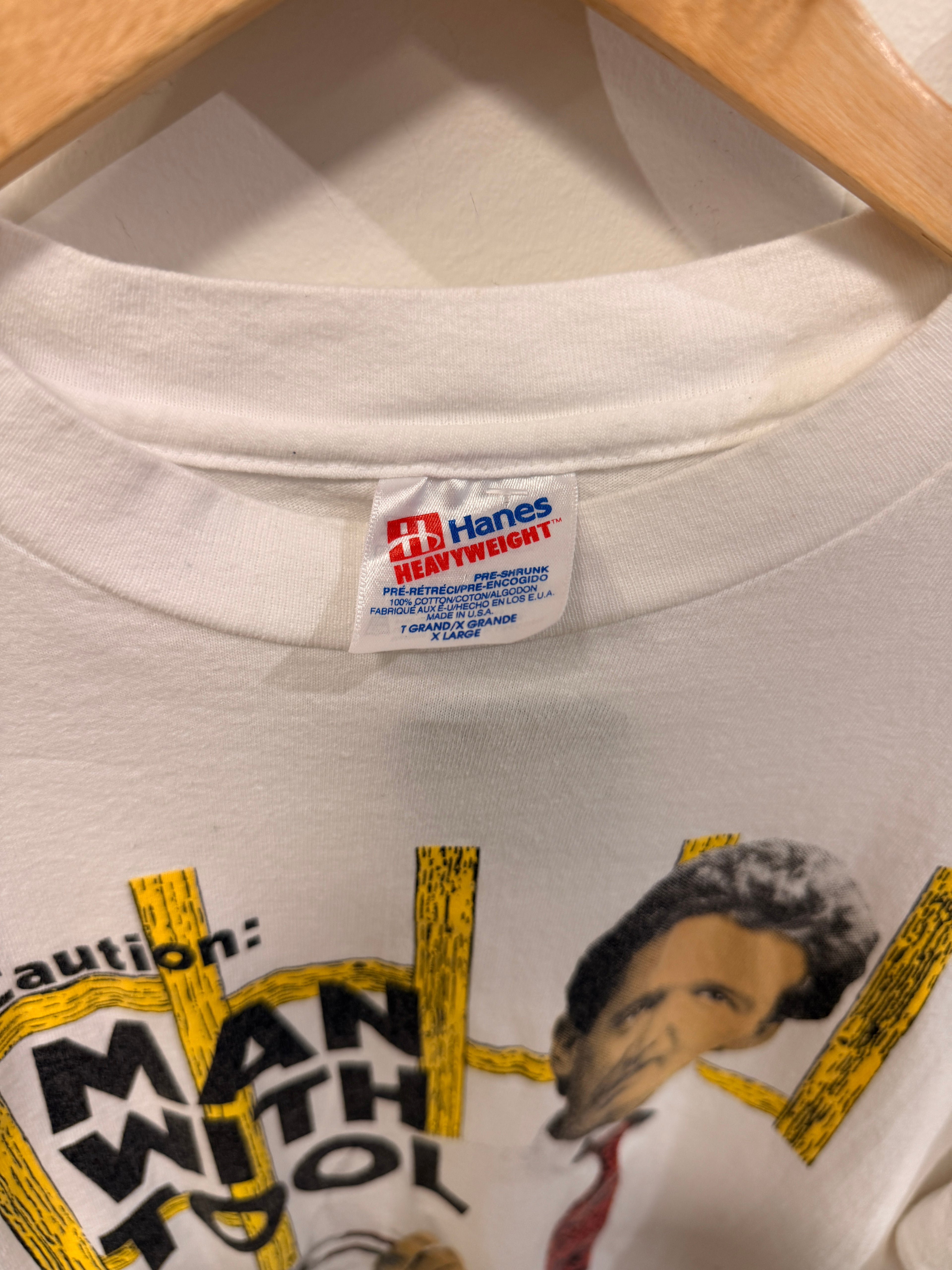 This vintage t-shirt features a classic design of a man holding a tool, perfect for those who appreciate nostalgic or...